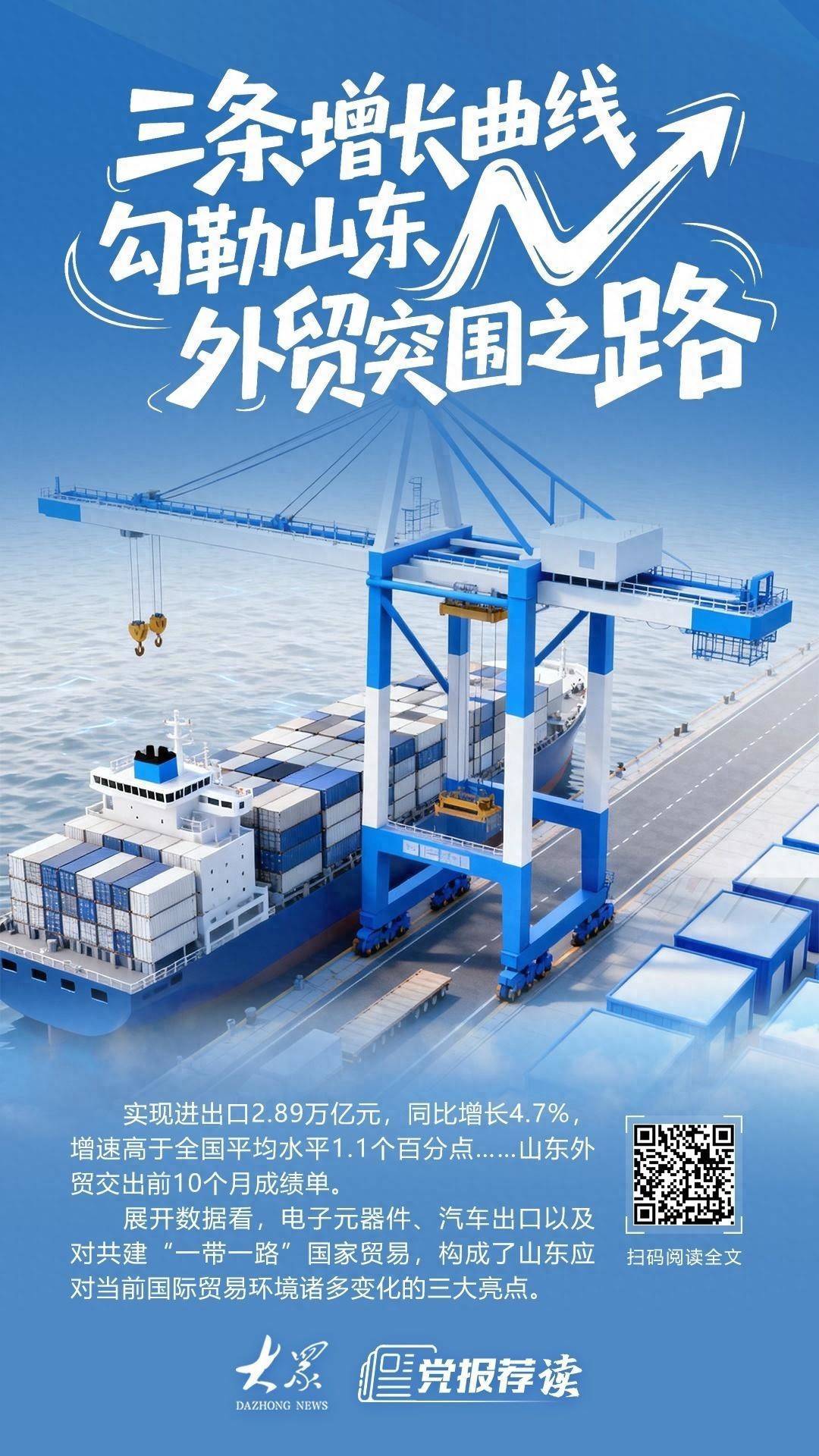 实现进出口2.89万亿元深富优配,同比增长4.7%,增速高于全国平均水平1.1个百分点……山东外贸交出前10个月成绩单。