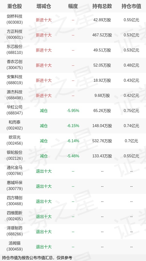本站消息,10月28日富国基金旗下金泽宇管理的富国中证1000交易型开放式指数基金公布三季报,近1年净值增长率26.72%。与上一季度相比富途证券,该基金前十大重仓股新增剑桥科技,方正科技,东芯股份,香农芯创,安集科技,源杰科技;其中华虹公司持仓占比0.56%,为该基金第一大重仓股;通化金马,惠城环保,四方精创,四维图新,泽璟制药,汤姆猫等退出前十大重仓股;详细数据如下: